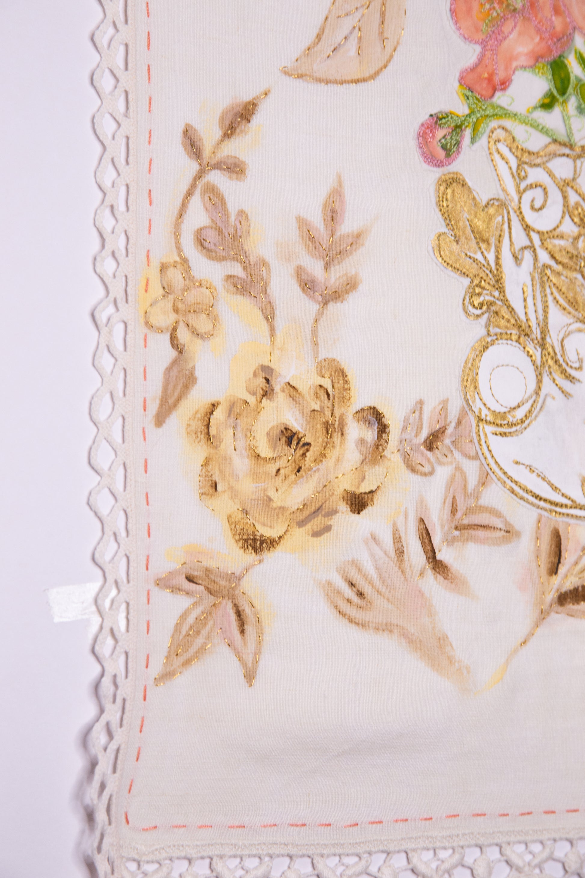 Machine embroidery, hand embroidery, fabric painting, appliqué on fabric